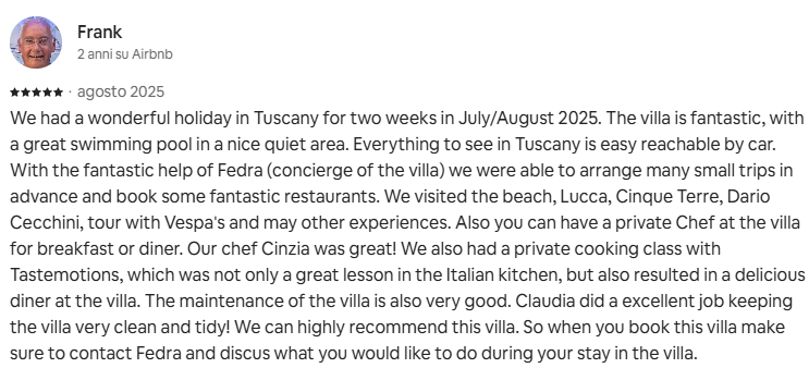 Whether it is organizing experiences, arranging transportation, or planning private dinners and activities at the villa, our team is here to help. Our goal is to make your time in Tuscany relaxing, enjoyable, and truly unforgettable.